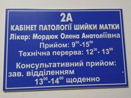 На базі поліклінічного відділення Житомирського обласного онкологічного диспансеру згідно з наказом управління охорони здоров’я облдержадміністрації від 4 лютого 2011 р. № 124 функціонує кабінет патології шийки матки, як організаційно методичний центр та центр лікування патологічних процесів шийки матки. За словами лікаря-онколога кабінету патології шийки матки Олени Мордюк, тут проводяться: діагностика та лікування захворювань шийки матки; збір інформації про виявлені патологічні процеси в обласній цитологічній лабораторії; інформування ЛПЗ області про виявлену патологію та зворотний контроль за дообстеженням виявлених хворих; контроль за якістю проведення цитологічного скринінгу в області. Також ведеться звітність про кількість виявлених та пролікованих патологічних процесів шийки матки в Житомирській області. На базі кабінету проводиться стажування акушерок та лікарів акушерів-гінекологів жіночих консультацій. Разом з лікарем-онкологом Оленою Анатоліївною Мордюк у кабінеті працює її надійний і досвідчений помічник – медсестра Аліна Дмитрівна Осипчук.
