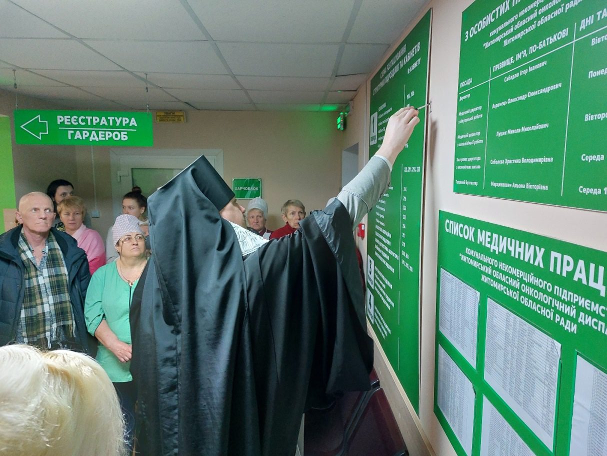 Чин освячення звершив Владика Житомирський і Овруцький Паїсій. Очільник єпархії прочитав Євангеліє та обійшов усі відділення, кабінети та службові кімнати, окропивши приміщення, медичне обладнання та персонал закладу святою водою.