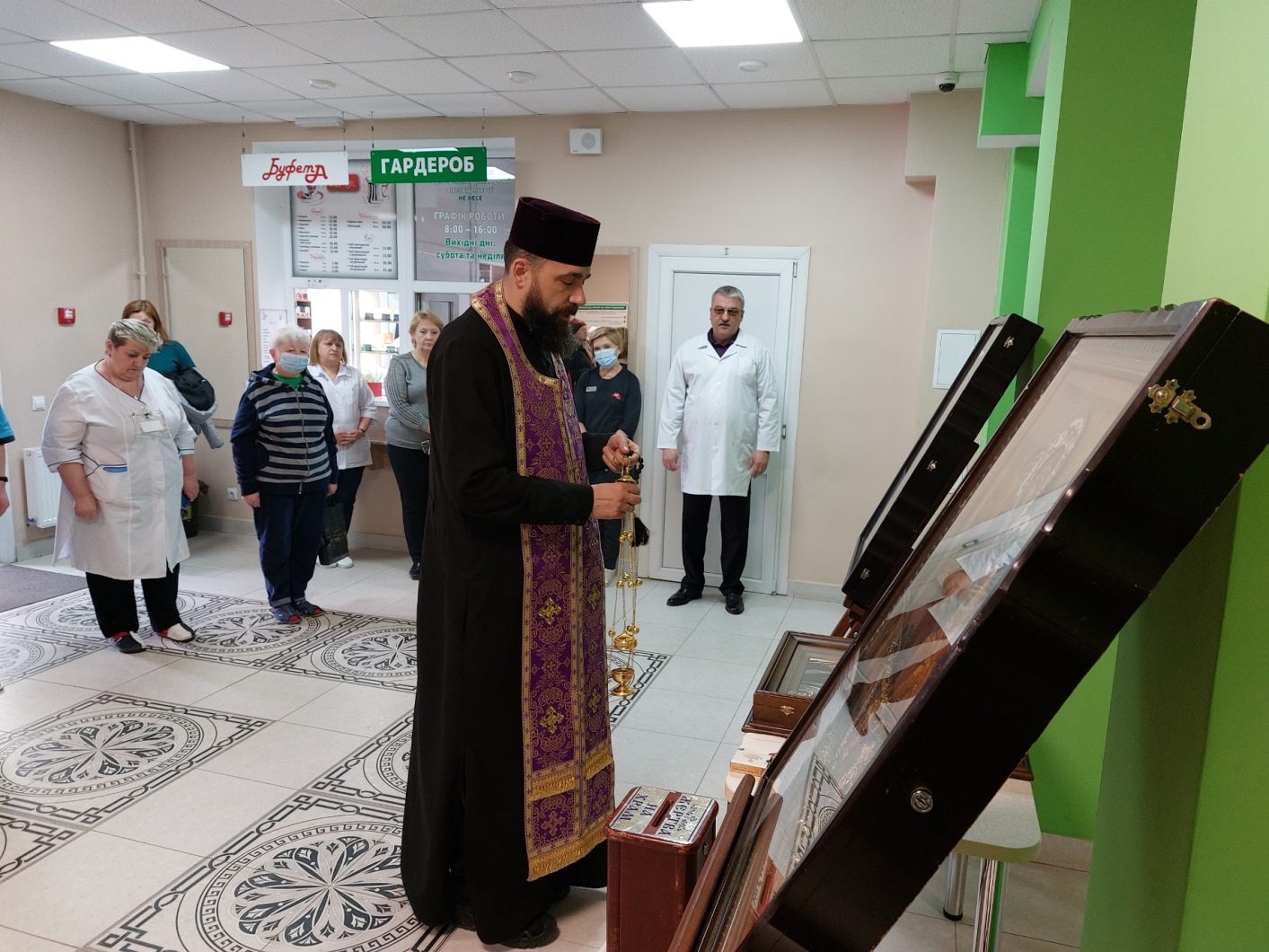 Настоятель лікарняного храму обласної лікарні отець Василь звершив молебень перед святинями за всіх важкохворих, за тих, хто лікується в онкодиспансері і за тих, хто допомагає їм одужувати.